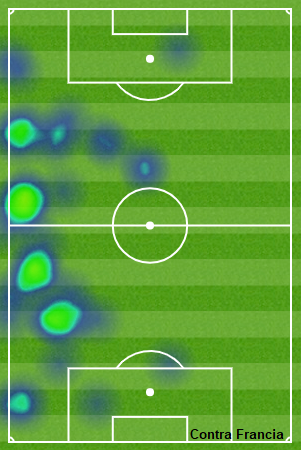 En cuanto a lo sucedido en Rusia, el hombre del Ajax retrasó su ubicación cada vez un poco más en sus tres juegos de lateral, como se ve en sus mapas de calor. Es probable que lo provocara el mayor potencial ofensivo de Nigeria y, en especial, Francia, pero así se volvió parte de una falla grupal.