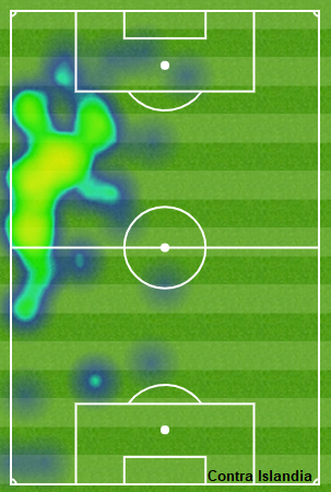 Su lectura fue especialmente importante frente a Islandia, partido en el que se vio una falta de apoyos internos y Tagliafico supo cerrarse con criterio. Ante un bloque defensivo retrasado, mostró inteligencia para moverse y generar una línea de pase para otro -lo que se ve en el compacto de abajo. Pero también tuvo otras buenas carreras que quedaron en nada porque no consiguió recibir la pelota: unas veces fue por no ser visto y otras, por imprecisiones.