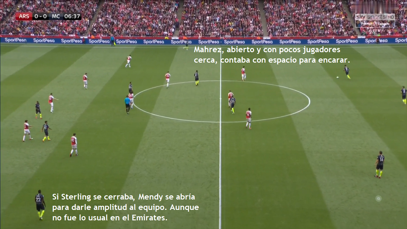 Aunque Mahrez no participó directamente en los tantos que marcó el City, fue una herramienta de desequilibro importante y una amenaza permanente. En la Community Shield logró escaparse de Marcos Alonso en varias oportunidades, como se aprecia en el video de abajo. Además, ante el Arsenal tuvo un arranque muy bueno en el duelo contra Ainsley Maitland-Niles, pero la entrada de Stephan Lichtsteiner redujo su influencia. Además, la banda izquierda logró más profundidad que frente al Chelsea.