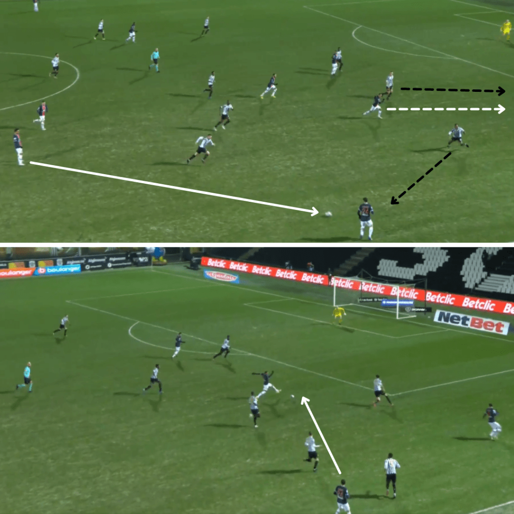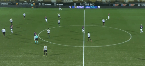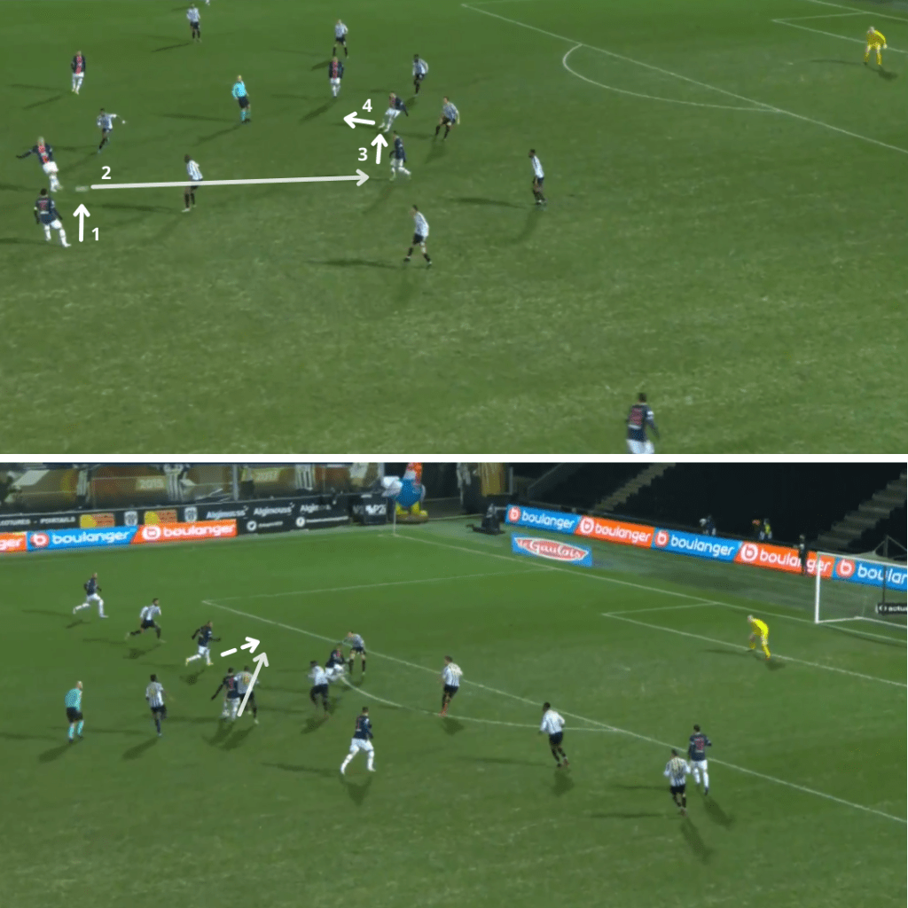 Su objetivo de dirigir el juego hacia las bandas fue claro, ya que allí se reduce la amenaza de peligro y los laterales no tienen la misma capacidad de desequilibrio de los talentos ofensivos (sin que sean negados con la pelota, porque incluso generaron el tanto). Para eso, los cuatro mediocampistas se enfocaron en tapar líneas de pase por adentro –sobre todo a Neymar y Di María, los dos futbolistas entre líneas-, incluida la misión para los externos (Pierrick Capelle y Mathias Pereira Lage) de olvidar a Florenzi y Kurzawa y estar pendientes de cerrarse y achicar distancias tanto cuando alguien del doble 5 (Lasssana Coulibaly o Ibrahim Amadou, generalmente este último) se desprendía para ir por Paredes o, sobre todo, Marco Verratti como cuando un jugador ofensivo se abriera al costado de uno de los volantes centrales.