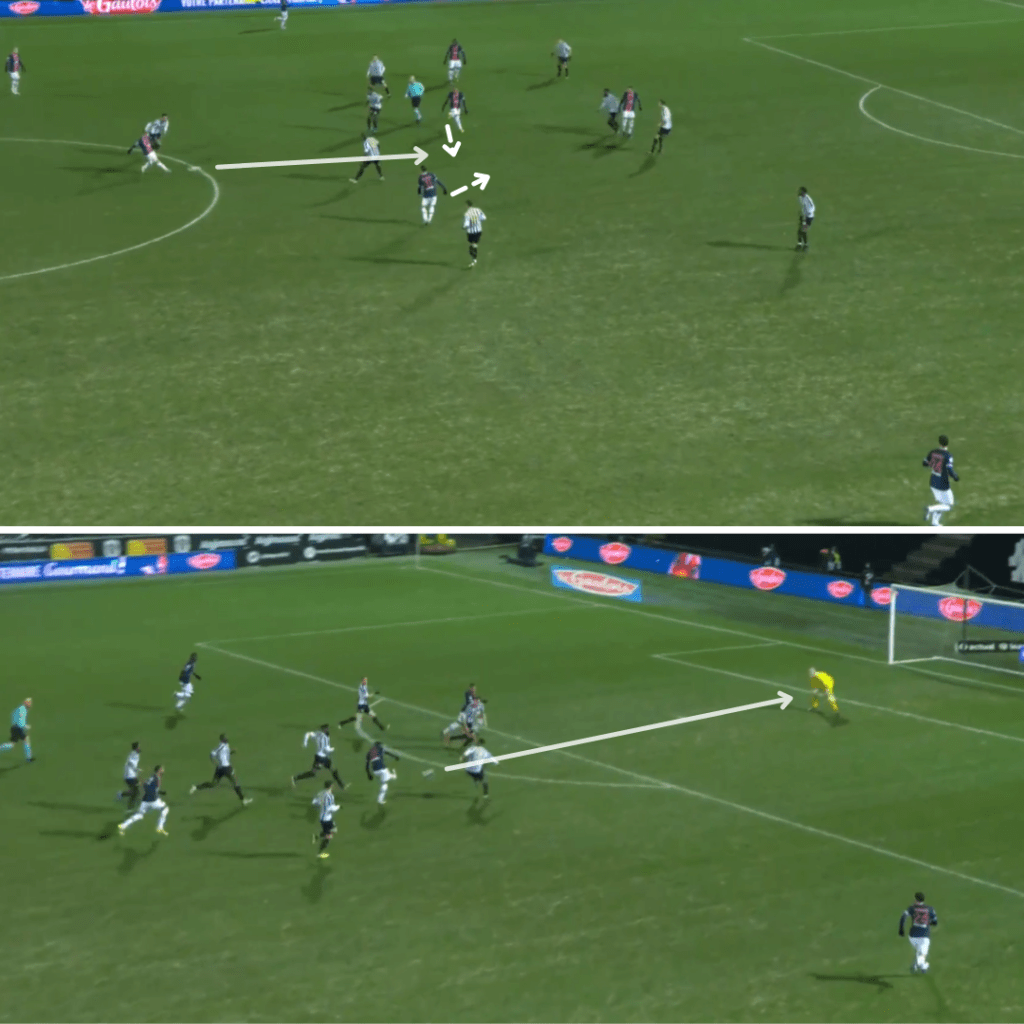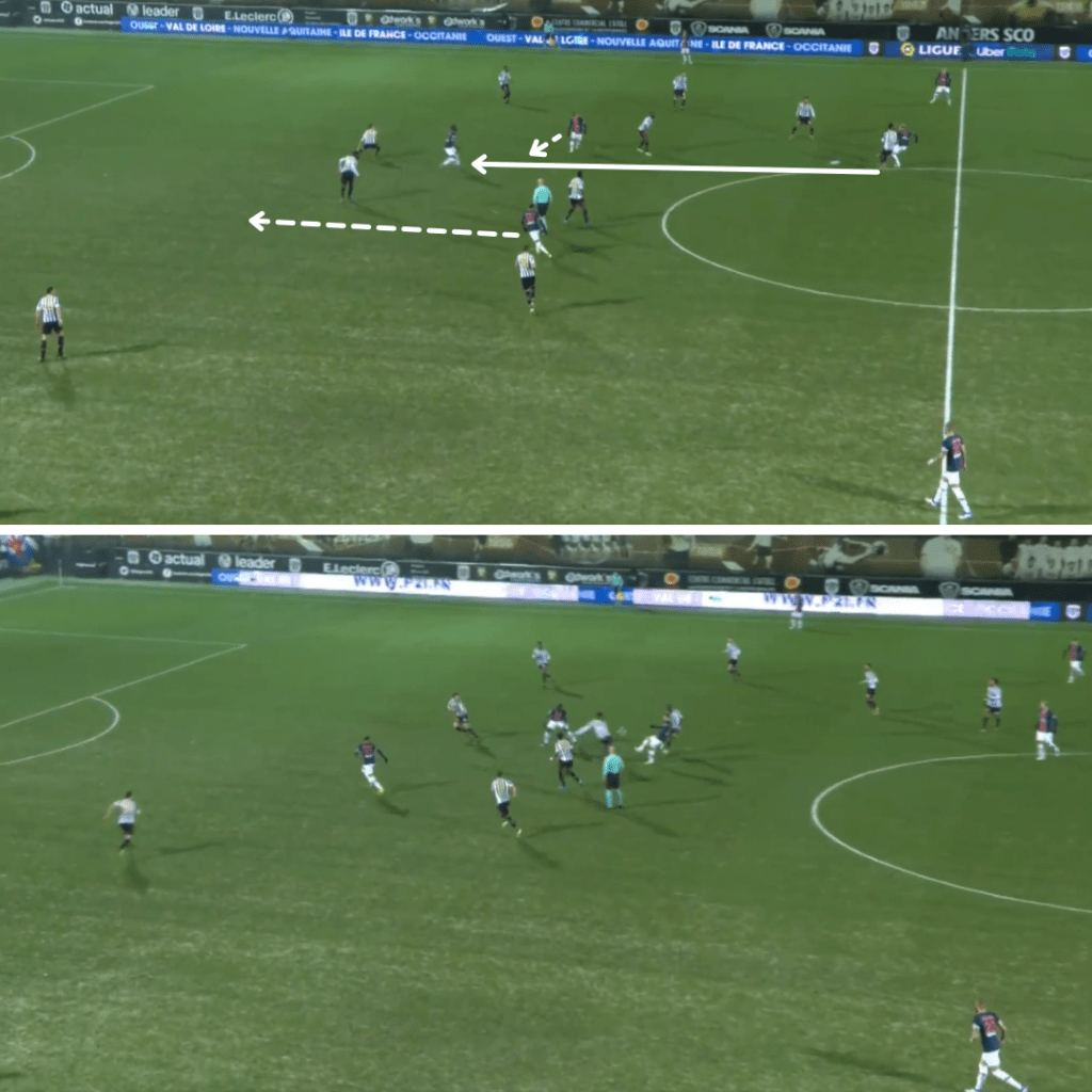 Más allá de la mejor ocupación de espacios del conjunto parisino, algo que había sido un déficit en el debut del santafesino, el punto que marcó el desarrollo del encuentro resultó el comportamiento defensivo del Angers y lo compacto y estrecho que fue desde su 4-4-2. Ante el buen juego interno de los recientes campeones, tanto por el potencial y las características de sus jugadores como por lo demostrado frente al Olympique de Marseille en el Trophée des Champions, los de Stéphane Moullin optaron por tapar el medio y liberar los costados.