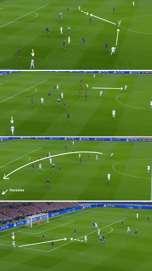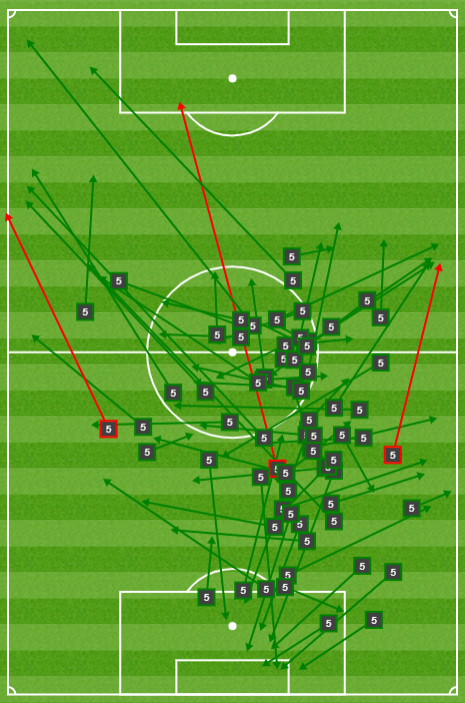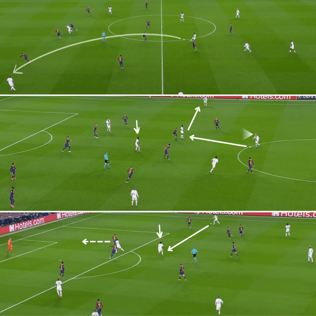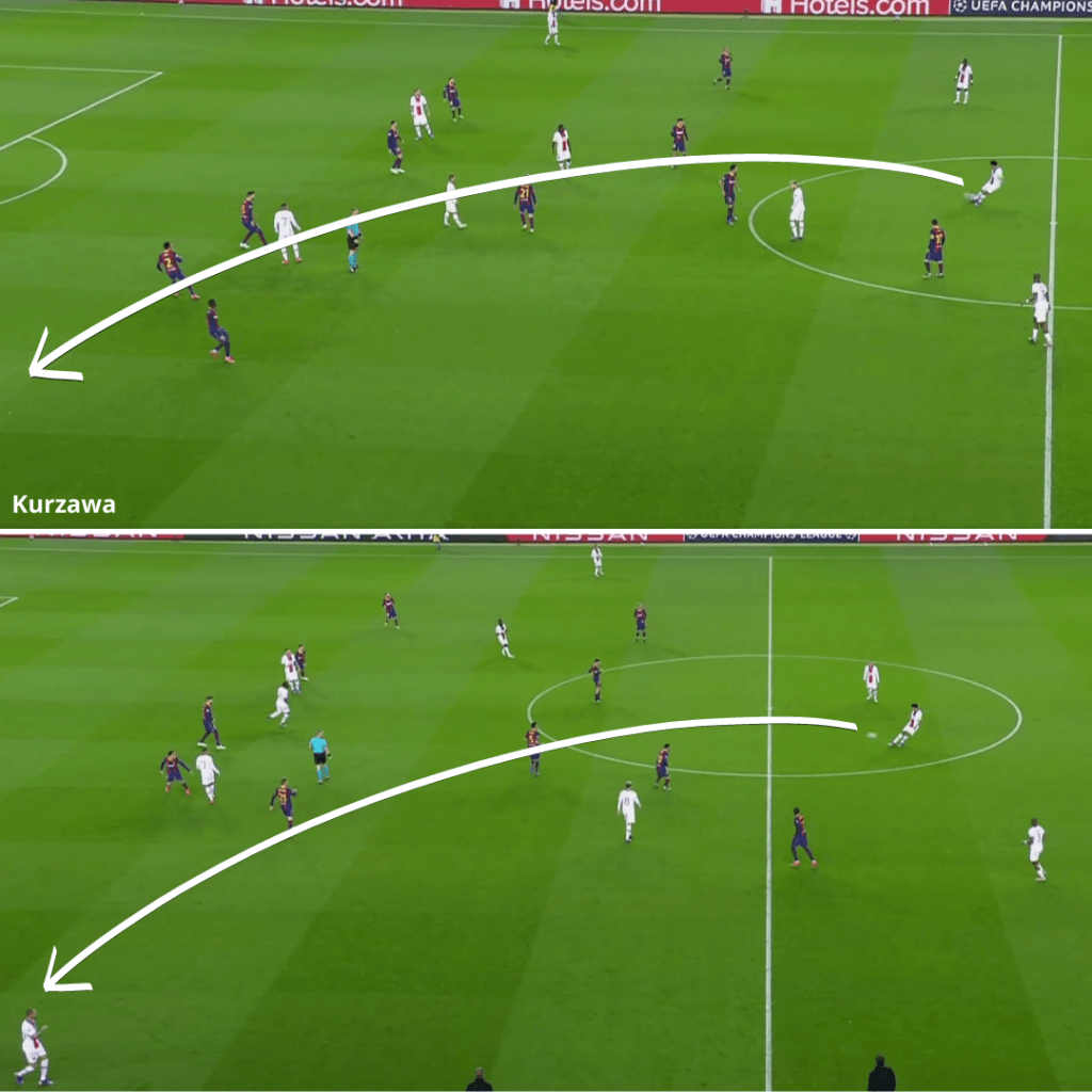 Para eso resultó fundamental la pegada de Marquinhos y Paredes. Con el argentino, quien más había explotado esto frente al Nice, más tapado (Frenkie de Jong le estuvo bastante encima, sobre todo cuando el Barcelona presionó más arriba, aunque en el segundo tiempo jugó más libre), el brasileño aprovechó las libertades que tuvo para orientar la tenencia. Ambos apuntaron mucho la izquierda (ver abajo) y con mucha precisión: el ex Roma completó 7/9 pases largos, mientras que el ex Boca entregó 5/6. Sin contar a Keylor Navas, fueron los dos jugadores parisinos que más envíos de ese tipo intentaron.