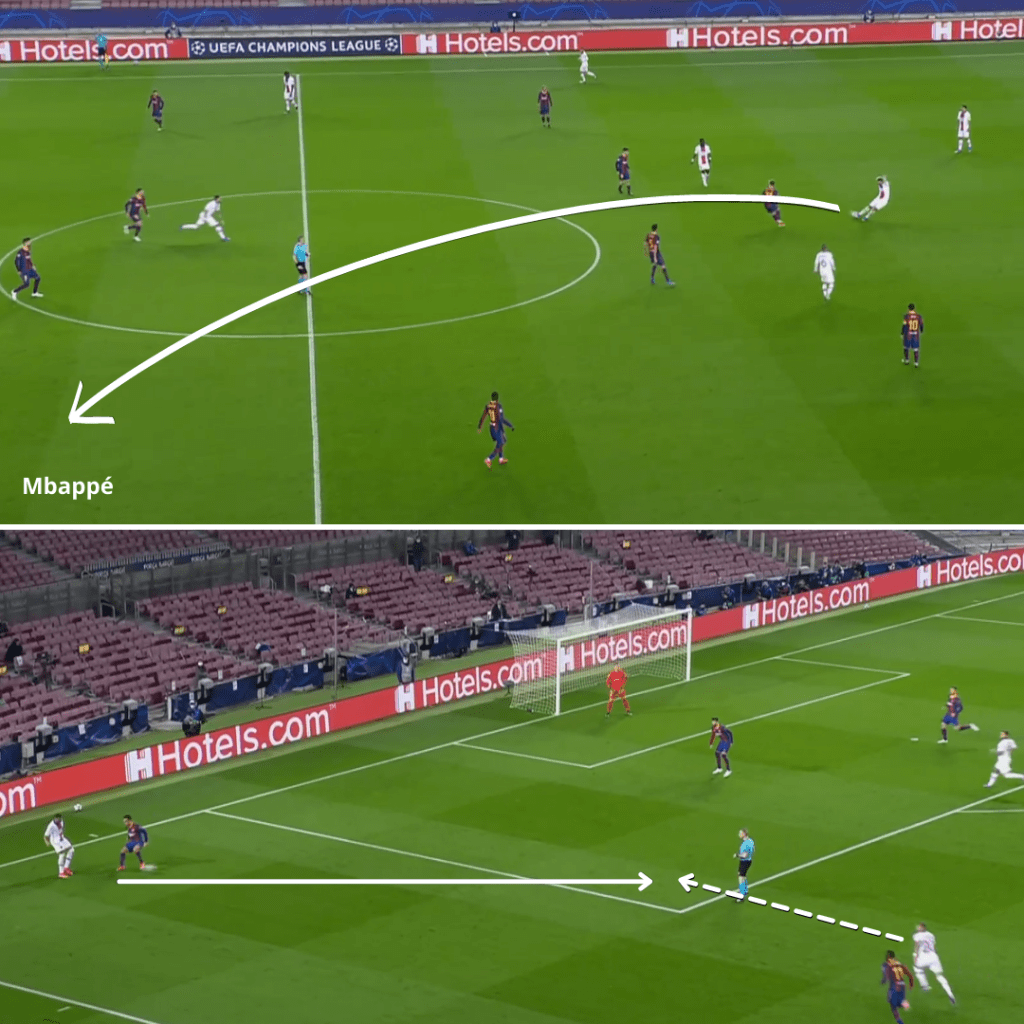 Todo eso fue coronado por un Mbappé estelar, la gran figura del partido. Atacando espacios o en el uno contra uno, asumió el liderazgo dejaron vacante Neymar y Di María y coronó una actuación espectacular con su hat-trick. Aunque en algunos encuentros del ciclo había estado algo errático en los duelos individuales e impreciso en la definición, contra el Nice ya había sido importante en el planteo y en el resultado y en el Camp Nou apareció en toda su dimensión: imparable cuando quedó aislado con Dest (completó 10 de 11 regates) y a campo abierto, fue un dolor de cabeza permanente.