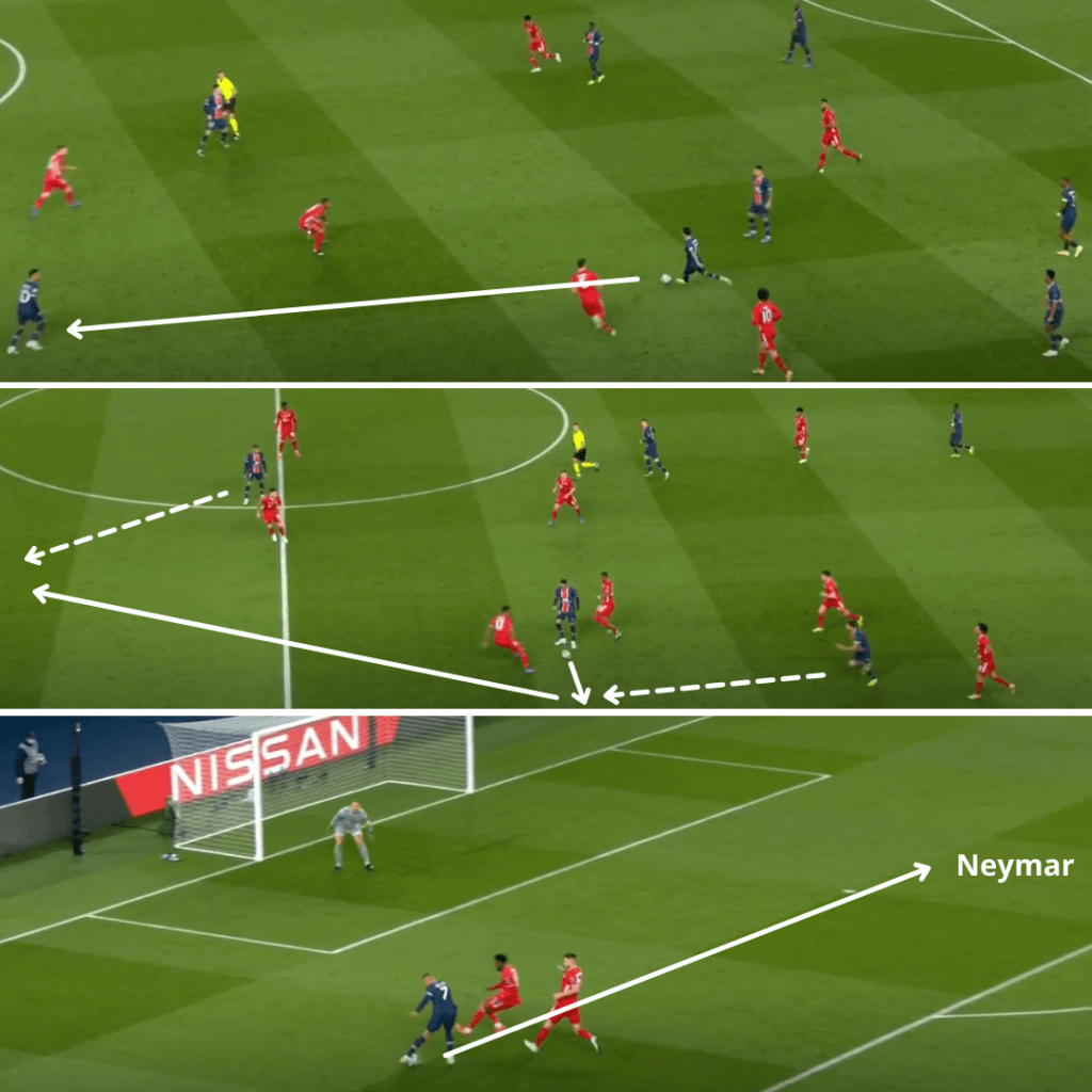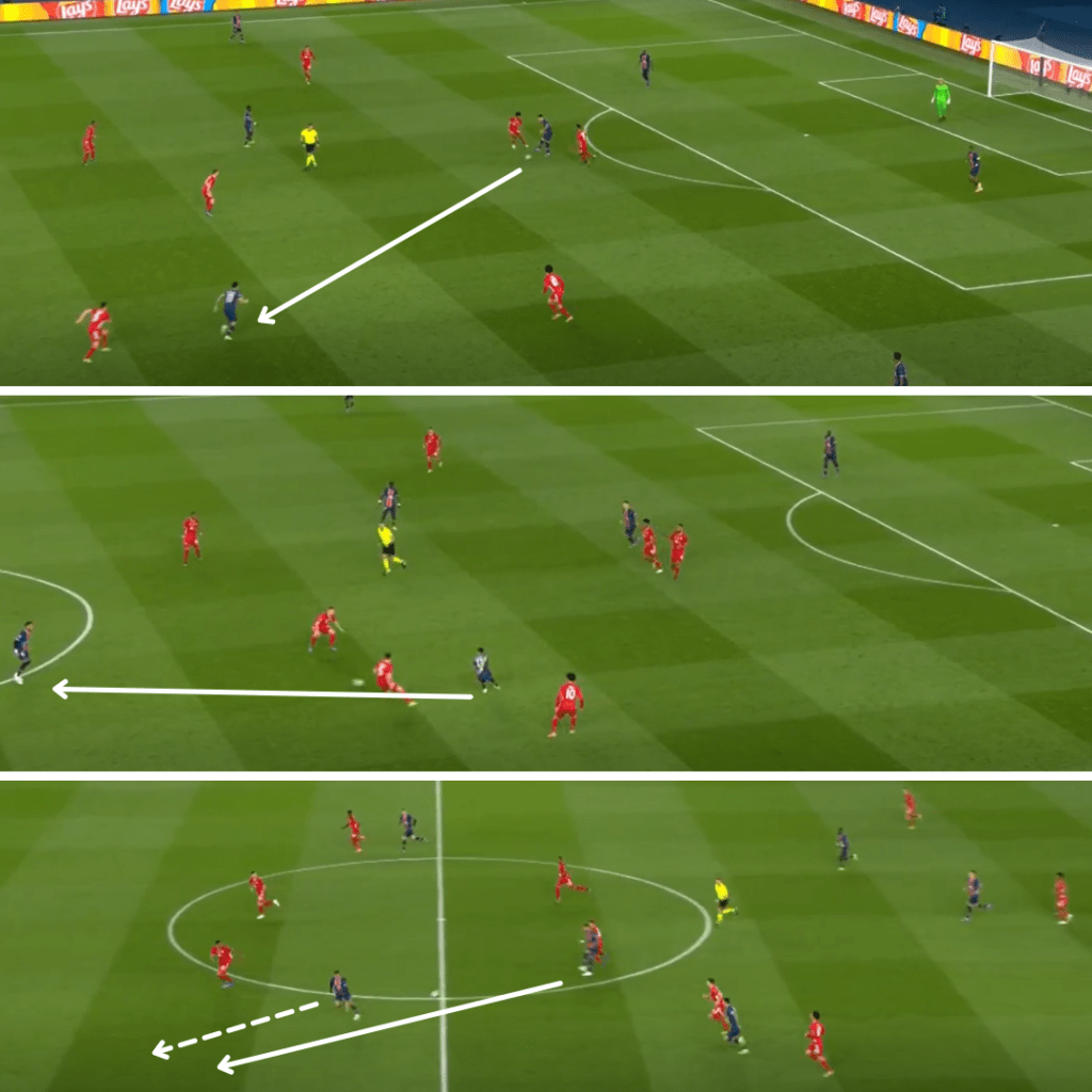 Ese cambio le permitió atacar más desde atrás y no sólo con contraataques, si bien volvió a ser un recurso destacado. De todas maneras, el principal camino para acercarse a Manuel Neuer se mantuvo en las asociaciones entre dos de los tres mediapuntas, que jugaron a perfil invertido para favorecer las combinaciones y los lanzamientos, para aprovechar los desmarques al espacio de Mbappé. «Son fantásticos jugadores (los del tridente) y la capacidad y la calidad está ahí y se puede apreciar. Obviamente trabajan muy duro. Estoy muy contento porque nuestro trabajo es poner a este tipo de talentos, que son genios, a trabajar como un equipo, a hacer el esfuerzo sin la pelota. Obvio que con el balón son fantásticos. Sentir que somos un equipo real, ése es el desafío para nosotros», comentó Pochettino en BT Sport.