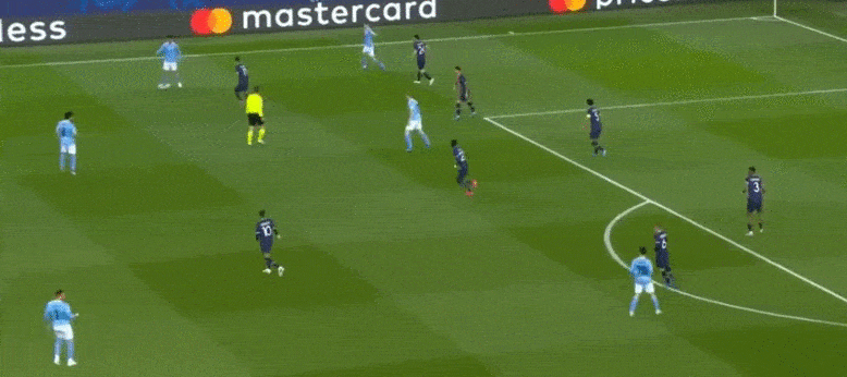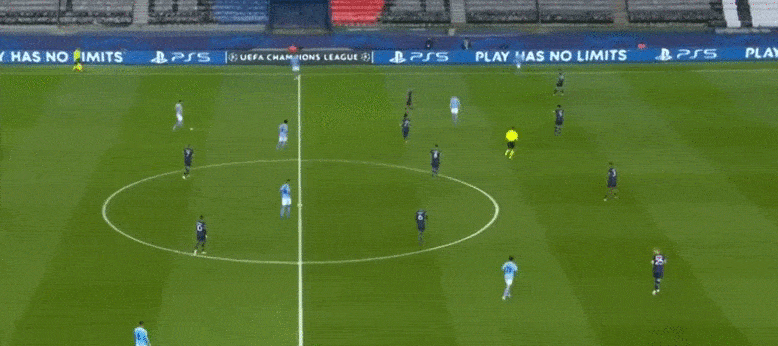 A partir de una progresión limpia desde atrás, principalmente desde Marquinhos -que volvió a convertir un tanto decisivo, como ante Atalanta y Leipzig en la temporada pasada y el Bayern München en cuartos de final- y Leandro Paredes, el conjunto parisino logró encontrar varias veces a Neymar, Ángel Di María y, en menor medida, Verratti en zonas intermedias (entre líneas y a los costados de İlkay Gündoğan y Rodri). A partir de sus pies, especialmente los del argentino y el brasileño, que estuvieron muy finos para asociarse, se metió en campo rival y consiguió que el desarrollo del juego fuera en los alrededores del área «Cityzen».