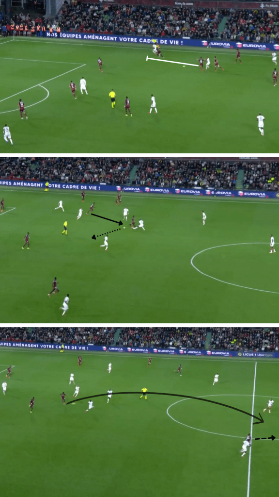 Sin embargo, pasada la media hora bajó la frecuencia de sus desplazamientos sin pelota, perdió claridad y empezó a sufrir las contras del Metz. El local, que también llegó y lastimó por afuera (la gran debilidad de este tipo de sistemas y del ciclo Pochettino), pudo acomodarse en el encuentro y comenzar a sacar ventajas de su velocidad. Ante pérdidas incómodas del equipo del santafesino (sea por errores en el traslado o pases interceptados en el inicio de las jugadas) y libertades para jugar (tanto por cierta relajación de los delanteros -algo entendible por sus características- como por un mediocampo indeciso o lento para apretar), los de Frederic Antonetti pudieron lanzar con tiempo.