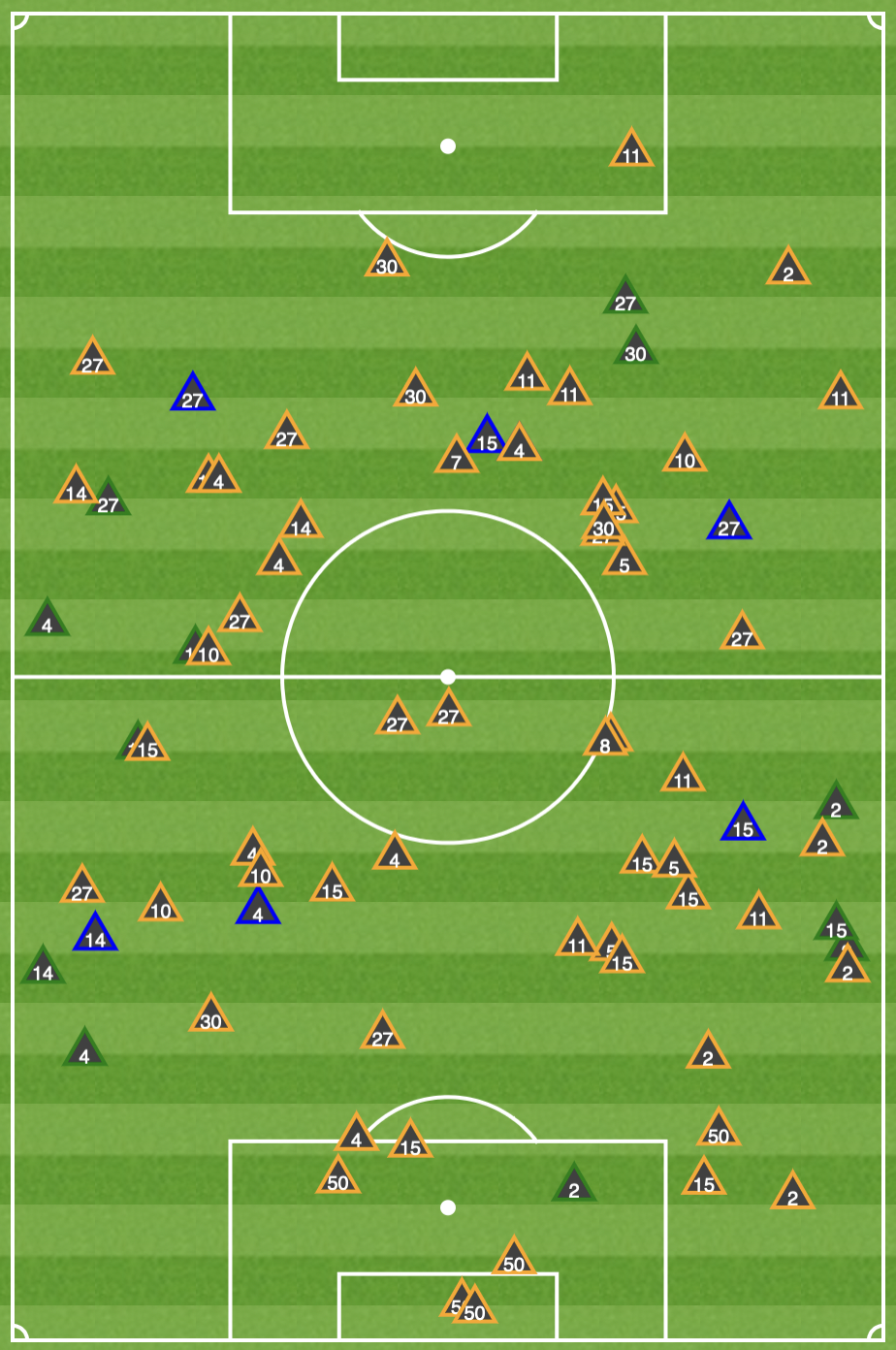 Sus pocas oportunidades también se debieron a la muy buena presión, coordinada y eficaz, del equipo parisino. Con Mbappé encargado de ir por uno de los dos zagueros, Di María y Neymar entre el central y el lateral de su lado, Messi pendiente de un mediocampista central y Gueye adelantado para respaldar a los cuatro atacantes y apretar al poseedor una vez que la salida se orientaba hacia un costado, consiguió varios robos en el último tercio (ver abajo), como en el gol anulado, o forzó pases largos en los que se impuso. Es cierto que la expulsión le dio más ventaja para realizar ese trabajo, pero también lo aplicó con éxito antes de esa incidencia. Lo demuestra su número de pases permitidos por cada acción defensiva (PPDA, una estadística que sirve para medir dónde y con cuánta decisión y coordinación busca recuperar un conjunto; los valores bajos indican que lo hace arriba en el campo): 5,20, el más bajo en sus últimas cinco fechas -en las que siempre tuvo marcas de al menos 12- y muy por debajo de su promedio de 9,88 -que, según The Analyst, es el segundo menor en la Ligue 1, detrás de la Association Sportive Monaco Football Club.